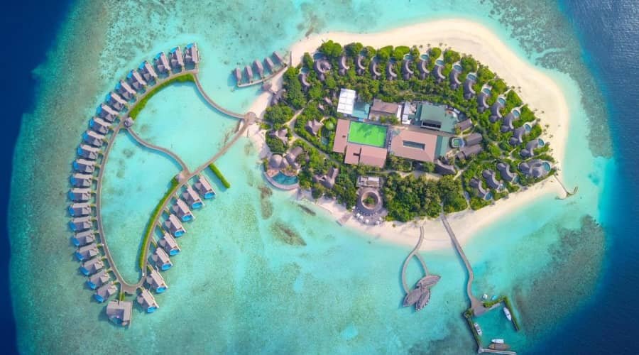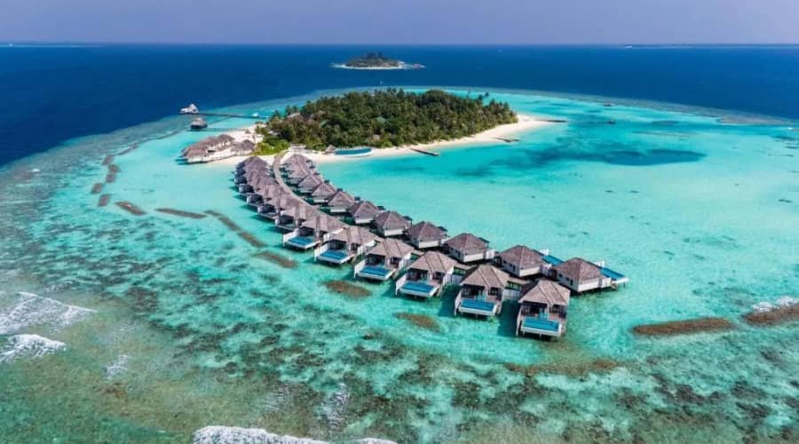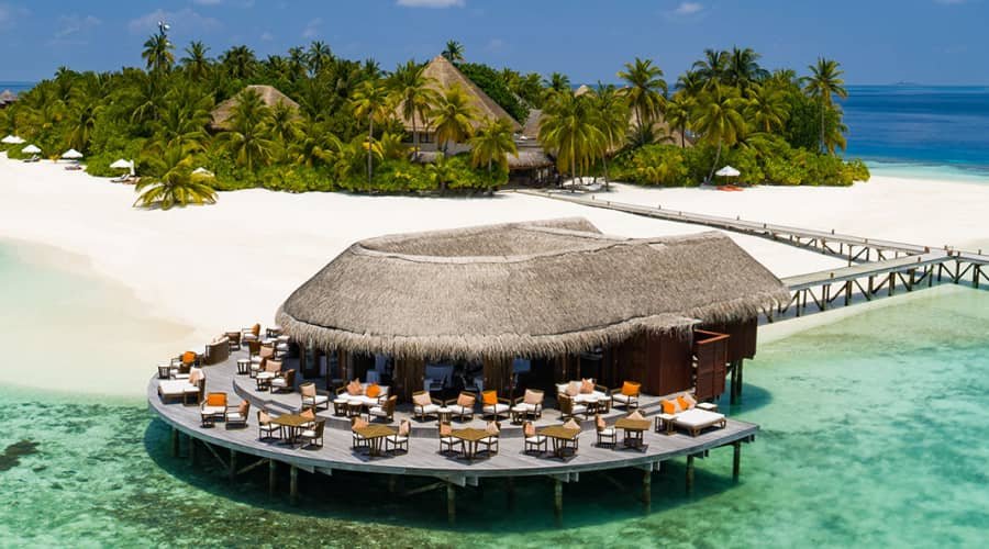 Spread between two islands connected by a 500-meter bridge crossing turquoise shallows, Conrad Maldives Rangali Island lets you enjoy both typical water villas and Maldivian cultural experiences. Located in secluded Alifu Dhaalu Atoll, this premium resort’s unique selling point is its underwater restaurant and wine cellar called Ithaa. These destinations must be in your places to visit in Maldives.