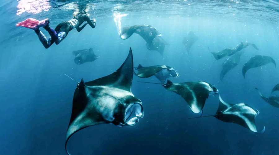 Visit during March’s manta ray season or book a luxury surf-and-stay package to ride breaks at the famous surfing waves off nearby Tiger’s Eye and Pasta Point Reef.