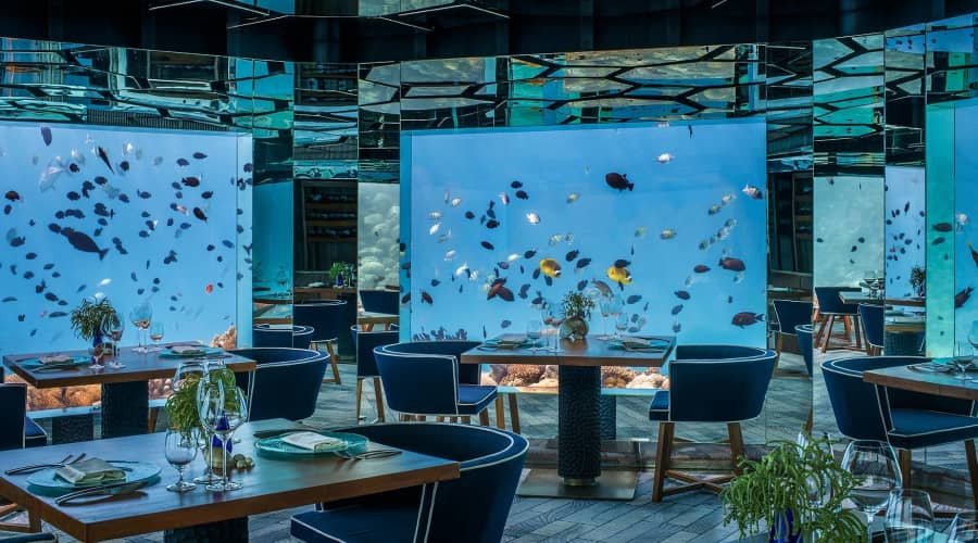 For a truly singular dining experience book a table at one of the Maldives’ underwater restaurants, where you can enjoy gourmet cuisine surrounded by schools of fish and coral reefs instead of walls. Ithaa Undersea at Conrad Maldives Rangali Island claims fame as the first all-glass undersea restaurant in the world, situated a tantalizing 16 feet below the ocean.